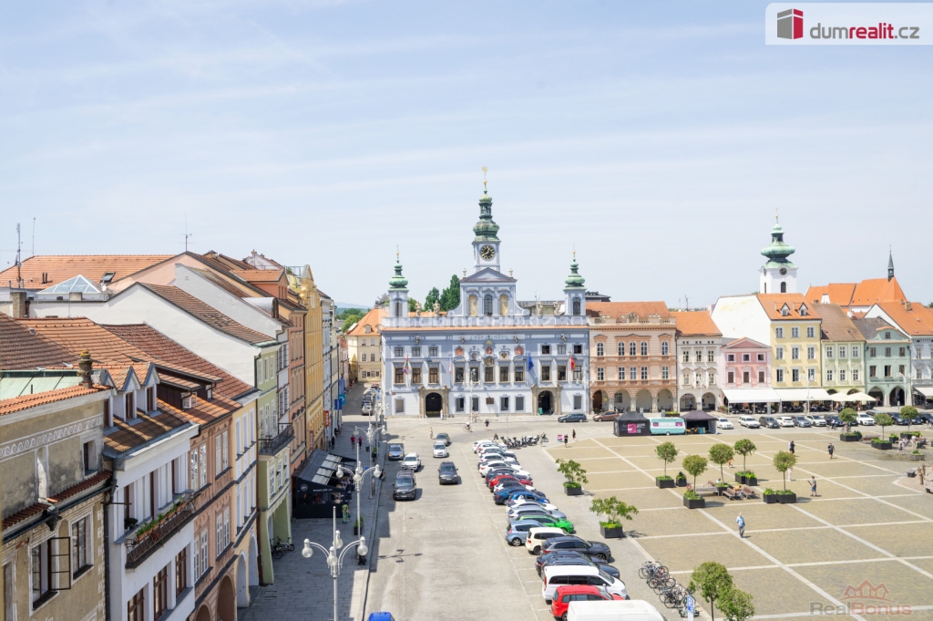 + poplatky 8.320,-Kč (el., topení, voda). Více informací Vám poskytne makléř Pavel Čada., Dumrealit.cz Vám zprostředkuje pronájem světlé prostorné (93 m) bytové jednotky 3+kk s výhledem na náměstí Přemysla Otakara II. v centru města České Budějovice, ul. Karla IV. 92/1. Krásný, světlý byt je orientovaný na jižní a západní světovou stranu s nadstandardní dispozicí. Podrobné rozkreslení dispozice naleznete na orientačním plánku mezi fotografiemi. Náklady na provoz bytu činí 8.320,-Kč včetně elektřiny, vytápění vodné-stočné apod., bez internetu. Objekt je zabezpečený a kontrolován ostrahou PCO. Parkovací místo lze řešit placeným rezidenčním stáním. Doporučuji osobní prohlídku, byt je připraven k okamžitému nastěhování. Hledáme dlouhodobé a solidní nájemce. Více informací Vám poskytne realitní makléř Pavel Čada z RK A TEMPO fungující pod ochranou známkou dumrealit.cz. Ev. číslo: 653195. Energetický štítek: G