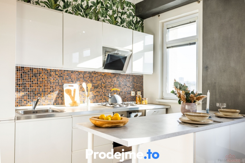 Tento byt má styl i pohodlí! Díky orientaci na jih vám dopřeje krásně prosvětlený interiér po většinu dne, navíc se vším důležitým na dosah! Je řešený jako 2+kk o ploše 52 m2. Dispozici tvoří obývací pokoj s moderní vybavenou kuchyní, ložnice, koupelna s rohovou vanou a toaletou a prostorná předsíň.