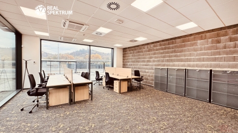 V nižším podlaží (96,69 m2) je prostor vhodný pro vstupní lobby, jednací místnost či zázemí pro zaměstnance, horní podlaží (200,36 m2) nabízí velkorysý, dobře prosvětlený kancelářský celek, který lze variabilně rozdělit na jednotlivé kanceláře, open space a zasedací místnosti podle potřeb nájemce. Prostory jsou vybavené moderním kancelářským nábytkem a umožňují tak rychlé nastěhování bez nutnosti velkých počátečních investic.