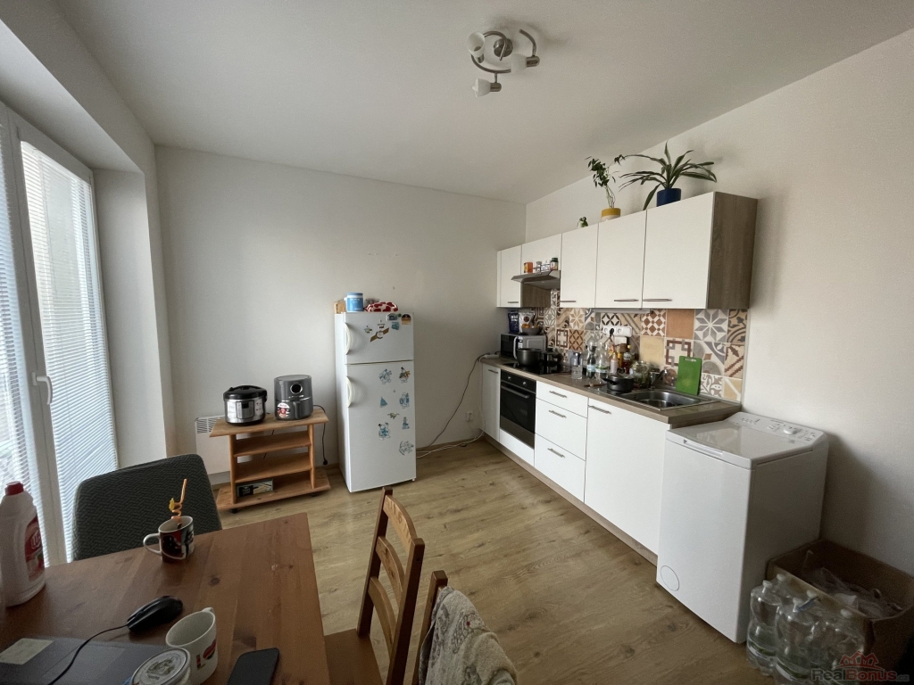 Nová kuchyňská linka se spotřebiči: sklokeramická varná deska, trouba, digestoř, lednice s mrazákem, pračka, jídelní stůl se židlemi, 2 komody. Jinak nezařízeno. Koupelna s vanou je spojena s WC. Veškeré osvětlení v bytě je LED - úspora pro nájemníky. Ložnice je vybavena klimatizací.