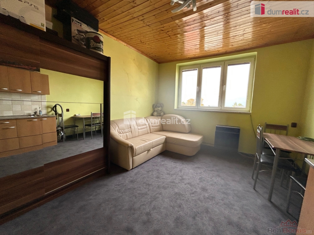 +popl. 3000, , Dumrealit.cz Vám zprostředkuje pronájem bytové jednotky o výměře 18,8 m, dispozičně 1kk v podkroví cihlového domu v Cerhenicích nedaleko nádraží. Jedná se byt o jedné místnosti s kuchyňským koutem a koupelnou. K bytové jednotce je možné využít skladovací prostor na půdě, která je v sousedství bytu. Byt má plynové topení. Zálohy jsou nastaveny při nájmu jedné osoby 3.000,- Kč, při dvou osobách 3.300,- Kč. Zálohy jsou zúčtovatelné a týkají se spotřeby elektřiny, plynu a vody. Dům je v prostředí klidné ulice. Cerhenice je městys s výborným vlakovým spojením na Prahu a Kolín (Kolín 12 km autem) a s dostupností dálnice D11 (Exit 35 km od černého Mostu). Při podpisu smlouvy je po budoucím nájemníkovi vyžadováno zaplacení kauce ve výši 11.000,- Kč, dále nájemné 7.500,- Kč spolu se zálohami 3.000,- Kč ( nebo při dvou osobách 3.300,- Kč) za první měsíc nájmu a provize realitní kanceláři ve výši 8.500,- Kč + DPH). V bytě je WiFi zdarma. Zařízení bytu na fotografiích možno ponechat. Ev. číslo: 652928. Energetický štítek: G