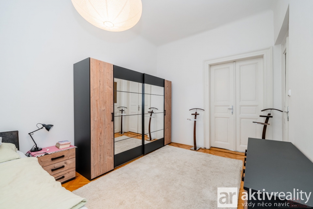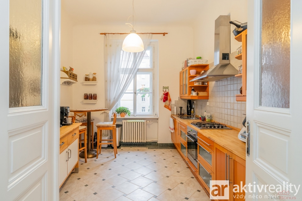 Vysoké stropy, velká okna ( v prosinci proběhne výměna oken ), parkety, bezpečnostní vstupní dveře. K bytu náleží velký sklep 12 m2.