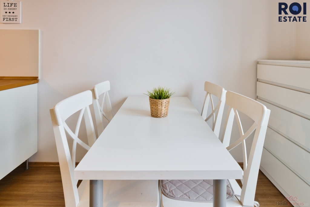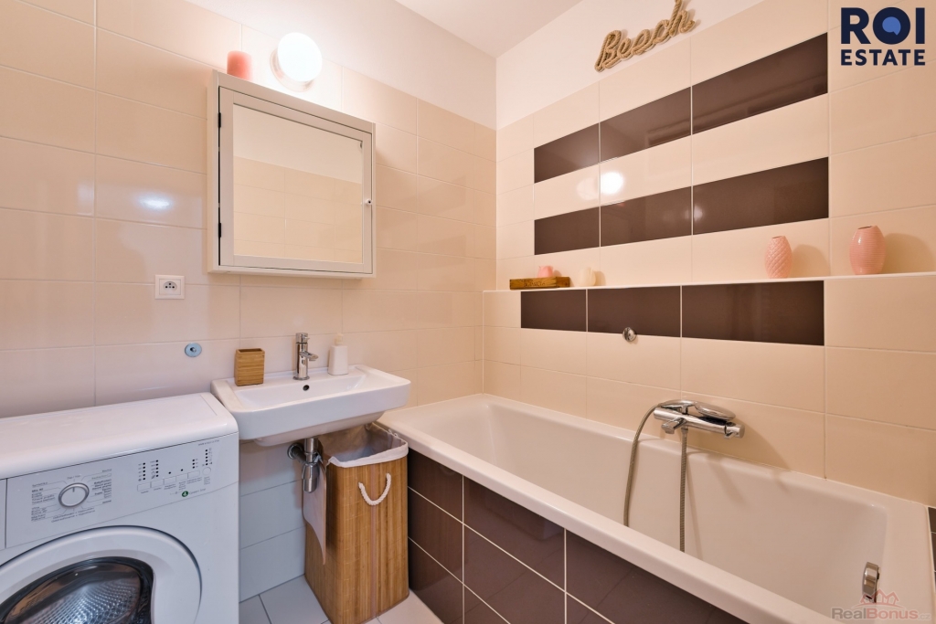Díky praktické a oblíbené dispozici a kompletnímu vybavení, které vidíte na fotografiích, si můžete užívat pohodlí od prvního dne ? vše v bytě může zůstat. K dispozici je plně vybavená kuchyň s myčkou, v koupelně pračka a v celém bytě je spousta úložného prostoru, což ocení každý, kdo má rád pořádek a funkční řešení.