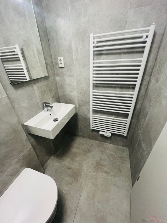 K dlouhodobému pronájmu nabízíme velmi prostorný a světlý byt o dispozici 1+kk (40 m2) s terasou (20 m2) ve 4. nadzemním podlaží Rezidence Zámecká. Byt je velmi pěkně situován na konci chodby 4. patra této novostavby. V chodbě je šatní stěna, odkládací a úložný pult s možností připojení pračky. V koupelně je společně wc a sprchový kout v nadčasovém designu. Kuchyňská linka s lednicí je součástí vybavení. Dominantou bytu je veliké francouzské okno se vstupem na velkou terasu.