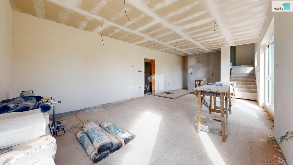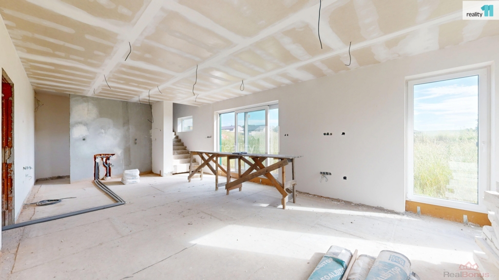 , Reality 11 Humpolec Vám exkluzivně zprostředkují koupi rozestavěného rodinného domu v obci Kojetín, která leží pouhých 7 minut jízdy od Města Havlíčkův Brod, Kraj Vysočina. Nemovitost je situována na krásném okrajovém pozemku o celkové výměře 1.514 m, z toho zastavěná plocha stavbou činí 165 m. Dům je připraven k dokončení dle Vašich vlastních představ a nabízí velký potenciál jak pro trvalé bydlení, tak jako bydlení a kombinace s podnikáním. Dispozice domu je velkorysá: 6+kuchyňský kout o celkové podlahové ploše cca 182 m (součet obytných ploch ze dvou podlaží), ideální pro větší rodinu nebo dvougenerační bydlení. Rozvržení místností a výměry 1.NP (120,8 m + 6,6 m schodiště): Zádveří (6,20 m), Technologie (6,00 m), Garáž (25,00 m), Chodba/schodiště (6,60 m), Obývací pokoj + jídelna + kuchyňský kout (42,70 m), Spíž (1,60 m), Chodba (4,40 m), Pokoj I. (10,80 m), Pokoj II. (10,80 m), Koupelna (4,70 m), samostatné WC (2,10 m), 2.NP (61,70 m): Chodba (8,90 m), Koupelna (7,20 m), samostatné WC (1,90 m), Ložnice (12,40 m), Šatna (5,50 m), Pokoj III. (13,80 m), Pokoj IV. (12,00 m). Zahájení stavby v roce 2021 a poslední stavební úpravy provedeny v roce 2025, dokončeny jsou rozvody vody, elektřiny, odpadů, slaboproudu a síťových prvků, plánované bylo podlahové vytápění. Z inženýrských sítí je do domu zaveden obecní vodovod, odpad je řešen kanalizací s přečerpávací jímky do veřejné kanalizace, plyn je na hranici pozemku. Máme pro Vás k dispozici 3Dvirtuální prohlídku nemovitosti od společnosti 3Dvirtualcz, dále také kompletní projektovou dokumentaci a půdorysy celého objektu. Obec Kojetín se nachází 6 km jihovýchodně od města Havlíčkův Brod, v klidné krajině Českomoravské vrchoviny. Díky výborné dostupnosti autem i autobusem je ideálním místem pro klidné rodinné bydlení s dosahem kompletní občanské vybavenosti v Havlíčkově Brodě (školy, školky, nemocnice, obchody, sportoviště). V případě zájmu o více informací kontaktujte kdykoliv makléře společnosti. Ev. číslo: 27545. Energetický štítek: D (100 kWh/m2/rok).