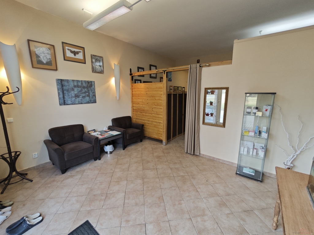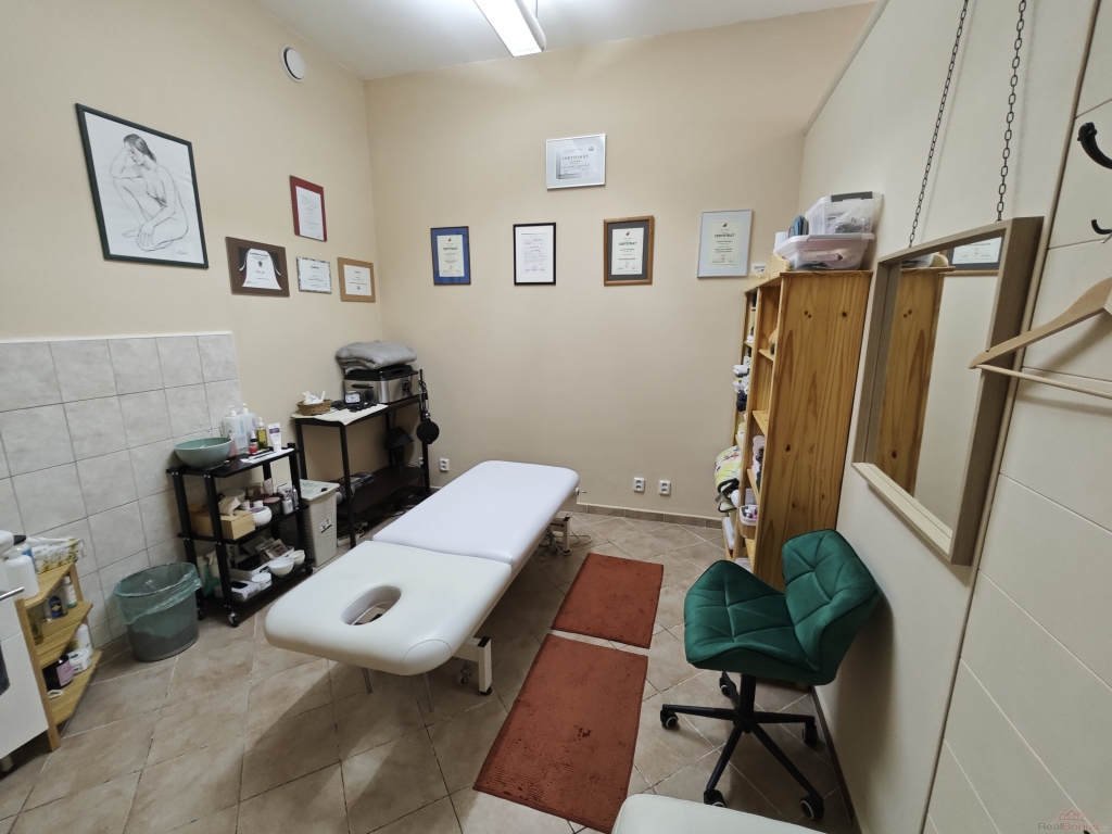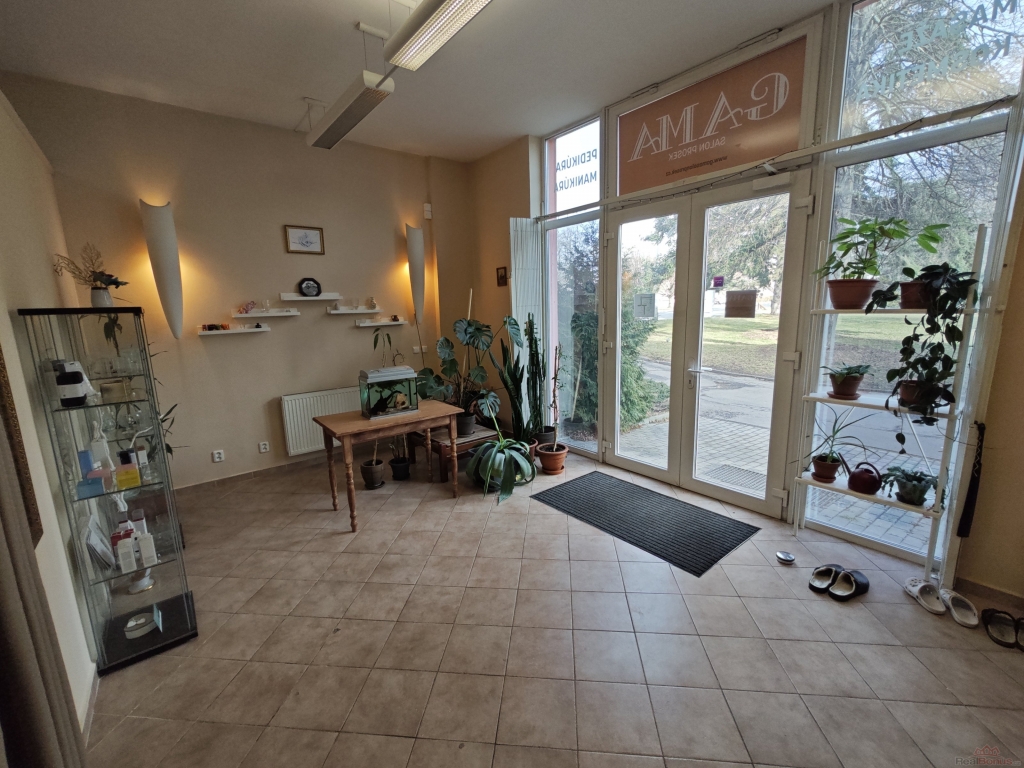 Velkoplošné dvoukřídlé plastové vchodové dveře s dvojskly, bezpečnostní mříží uzamykatelnou zevnitř a horním a bočním zaskleným prostorem vhodným na umístění reklamního poutače. Podlahy - dlažba, vytápění radiátory s centrálním zdrojem tepla. Prostor je bezbariérový s vysokými stropy a v současnosti je provozován jako masážní salón a kosmetika( dříve kavárna), ale nabízí se zde možnost dalšího komerčního využití, jako ordinace( dvě zastávky od nemocnice Bulovka), kancelář apod., popřípadě je zde možná i přestavba na bytovou jednotku se souhlasem SVJ, který zajistíme.
