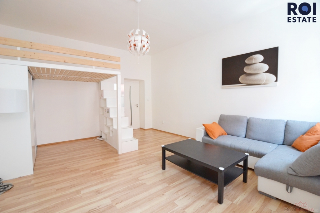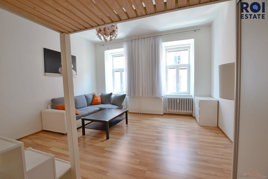 Nabízíme Vám k podnájmu pěkný stylový byt. Jedná se o zařízené 1+1 ve druhém patře domu bez výtahu.