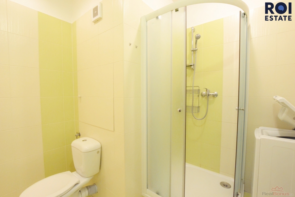 Veškeré vybavení je součástí podnájmu, těšit se můžete na speciální manželskou postel, která je na půl patra a velkou vestavěnou skříň. Dále je pak pokoj vybaven sedací soupravou a plně zařízeným kuchyňským koutem, který poskytne skvělý pocit z vaření. Koupelna nabízí pračku a sprchový kout. Nezapomeňte si povšimnou sladěného obložení. Velké vestavěné skříně se nachází také na chodbě, tudíž odkládacích prostor je mnoho.