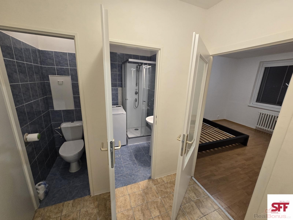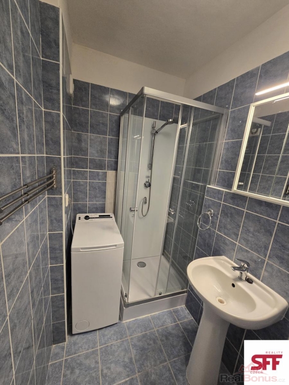 V koupelně se nachází nový sprchový kout, umyvadlo s osvětlenou galérkou a nová pračka. Toaleta je samostatná. V bytě jsou instalované žaluzie a celý prostor je nově vymalovaný. Byt je vhodný pro jednotlivce nebo pár.