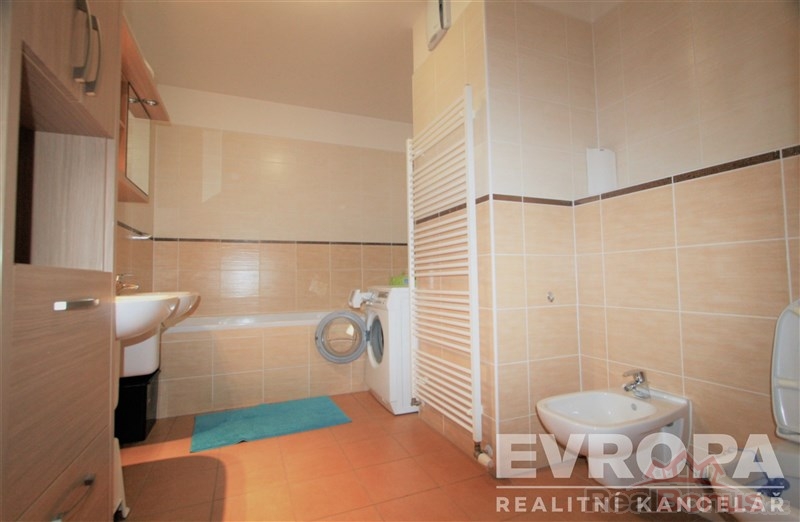 Vybavení bytu tvoří kuchyňská linka s ostrůvkem včetně všech spotřebičů, podlahy jsou laminátové a přírodními tóny, které ladí k rámům moderních eurooken. Vkusně provedené koupelny včetně koupelnového nábytku. Velké skříně v chodbě a v ložnici, police v komorách. Na oknech jsou žaluzie také předokenní automatické rolety. Vytápění a ohřev vody je centrální.