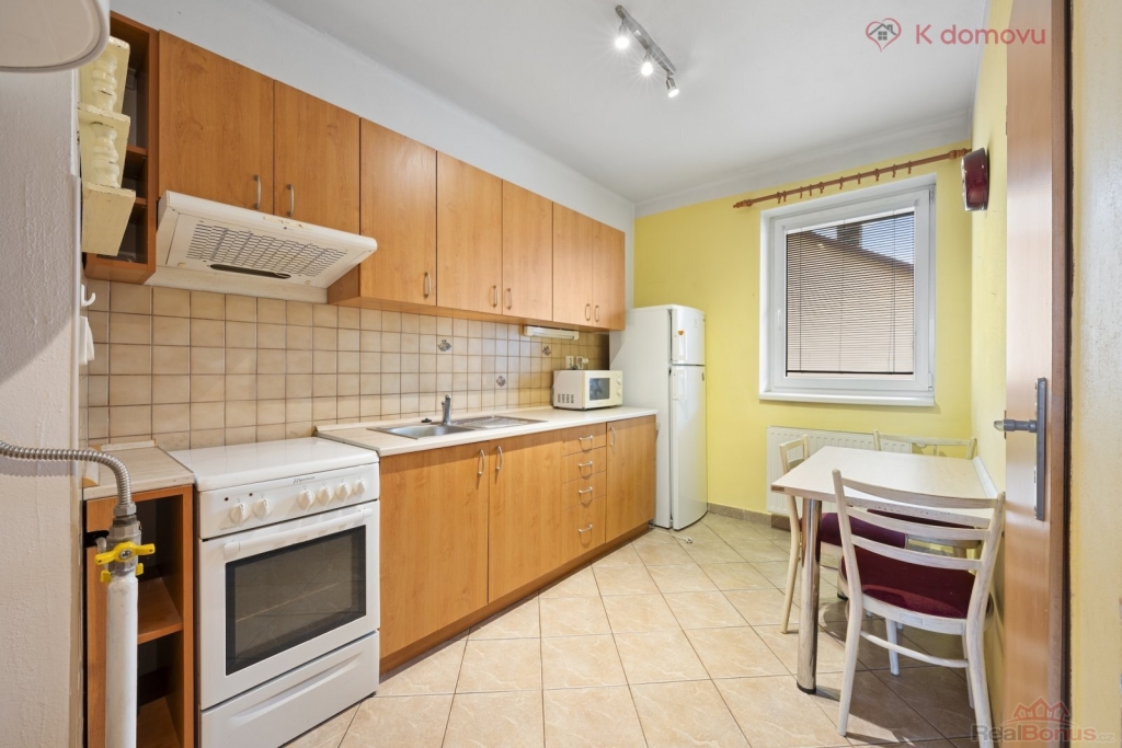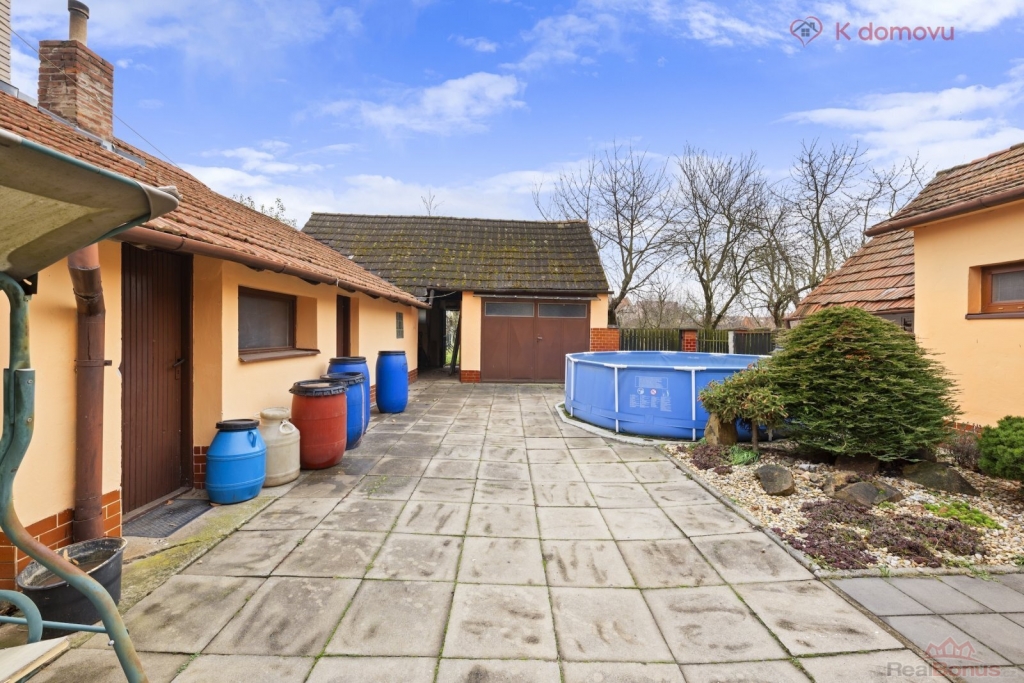 Nabízený RD je přízemní a sestává ze dvou bytových jednotek 1+1 (31m2) a 3+1 (117m2). Byty jsou odděleny průjezdem, který pak vede do vnitrobloku. Bonusem je i možnost zobytnění půdních prostor, které nabízejí další možnou obytnou plochu. Pro svou dispozici je dům vhodný pro rodiny hledající větší prostor nebo bydlení s výminkem, či využití bytu k pronájmu.