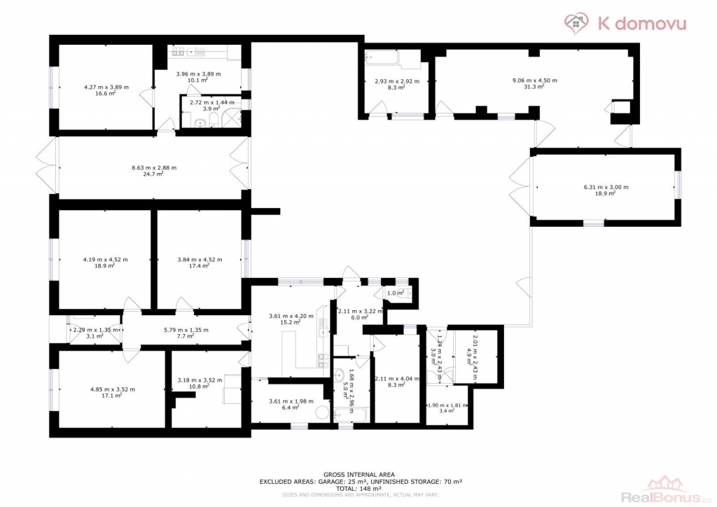 | Celková podlahová plocha | 148 m² |