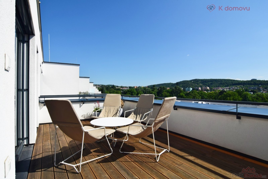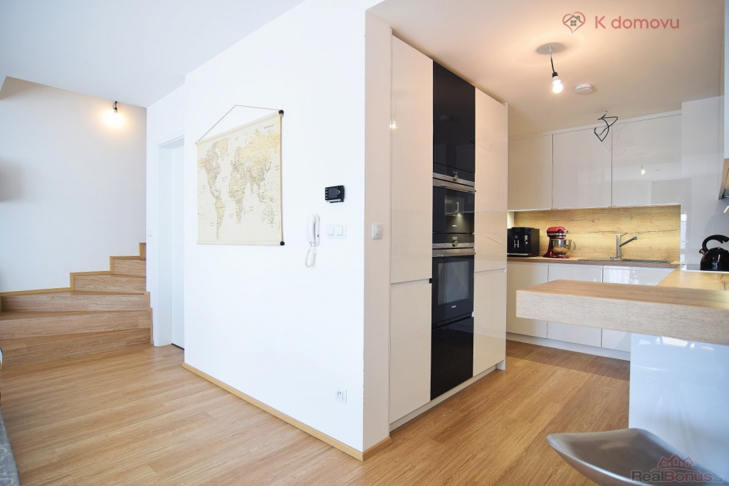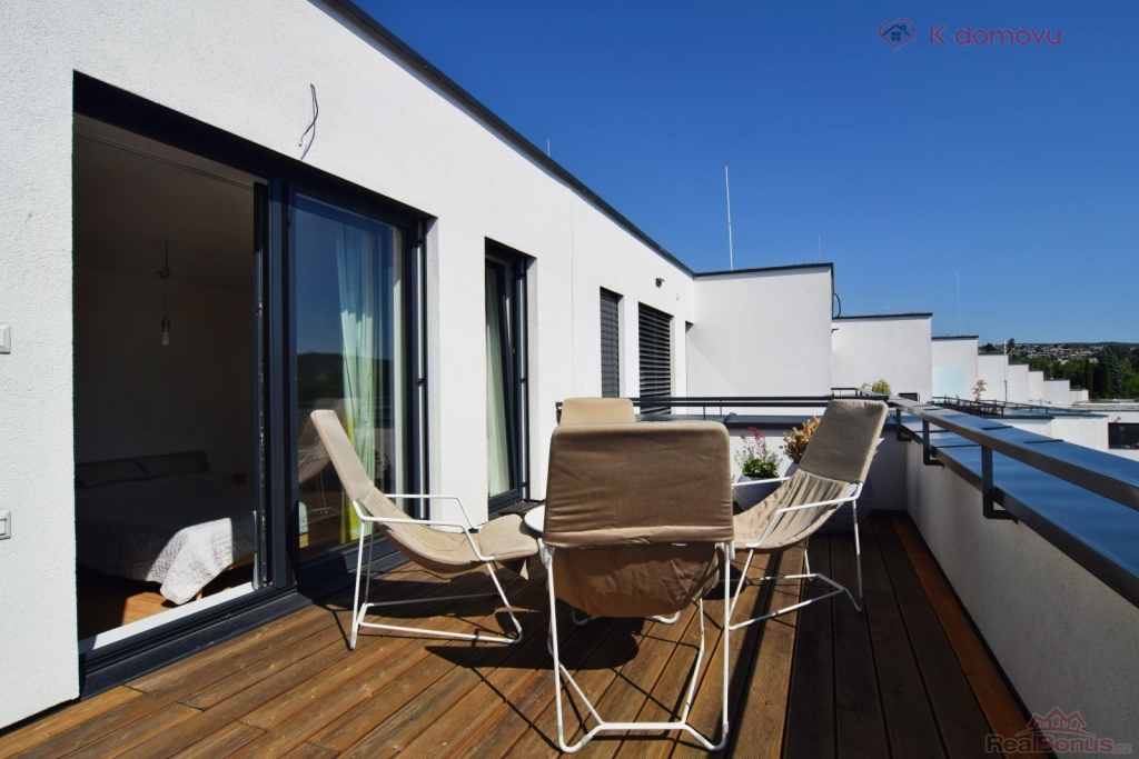 Pronájem nového, řadového rodinného domu s garáží s dispozicí 4+kk o přibližné užitné ploše 160 m2 se zahradou 52 m2 v klidné brněnské části Jundrov.