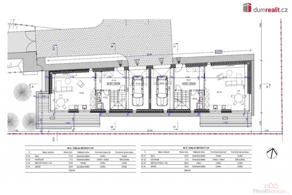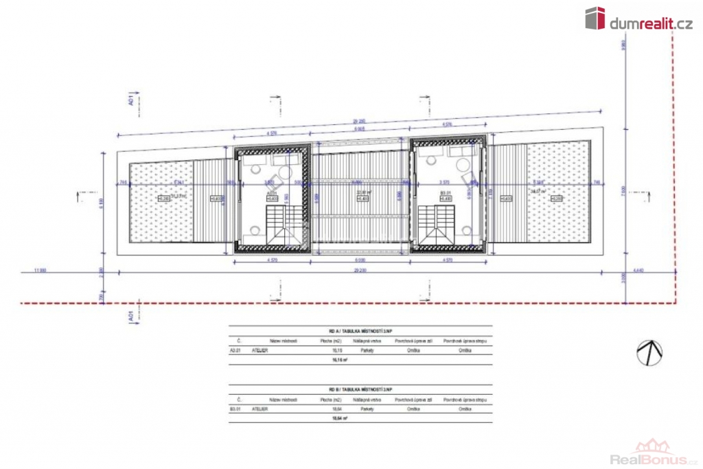 Cena uvedena včetně provize a právních služeb., Dumrealit.cz Vám zprostředkuje koupi rovinatého stavebního pozemku plochy 909m určeného pro výstavbu dvojdomu o užitné ploše 333,5m, se sklepními prostory 166,1m a střešními terasami plochy 102,2m. Pozemek je obdélníkového tvaru s plánovaným vjezdem z ulice Davídkova, Praha 8. Nachází se na kopci v místě, kde svah pozvolna přechází do roviny. Na výstavbu dvojdomu již bylo v roce 2025 vydáno územní rozhodnutí. Směrově je situován zejména na jih a sever. Dům "A" má užitnou plochu 159,0m, plus sklepní prostory 78,8m a střešní terasy 47,7m. Dům "B" má užitnou plochu 174,5m, plus sklepní prostory 87,3m a střešní terasy 54,5m. Jedná se vždy o dvě obytná nadzemní podlaží a střešní ateliér se dvěma terasami pro každý dům. V 1. NP se nachází hala, koupelna a obývací pokoj s kuchyňským koutem, dále garáž. Ve 2. NP se nachází tři ložnice a prostornější koupelna. Ve 3. NP se nachází střešní ateliér se vstupy na dvě terasy, z nichž bude krásný výhled na Prahu. V celé ploše půdorysu domu je podzemní podlaží s výškou stropu 2,55m se širokým potenciálem využití na kanceláře, skladové prostory, tělocvičnu, posilovnu, herny apod..
