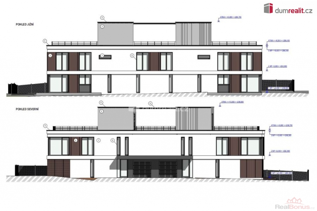 Cena kompletní, včetně provize a právních služeb., Dumrealit.cz Vám zprostředkuje koupi rovinatého stavebního pozemku plochy 909m určeného pro výstavbu dvojdomu o užitné ploše 333,5m, se sklepními prostory 166,1m a střešními terasami plochy 102,2m. Pozemek je obdélníkového tvaru s plánovaným vjezdem z ulice Davídkova, Praha 8. Nachází se na kopci v místě, kde svah pozvolna přechází do roviny. Na výstavbu dvojdomu již bylo v roce 2025 vydáno územní rozhodnutí. Směrově je situován zejména na jih a sever. Dům "A" má užitnou plochu 159,0m, plus sklepní prostory 78,8m a střešní terasy 47,7m. Dům "B" má užitnou plochu 174,5m, plus sklepní prostory 87,3m a střešní terasy 54,5m. Jedná se vždy o dvě obytná nadzemní podlaží a střešní ateliér se dvěma terasami pro každý dům. V 1. NP se nachází hala, koupelna a obývací pokoj s kuchyňským koutem, dále garáž. Ve 2. NP se nachází tři ložnice a prostornější koupelna. Ve 3. NP se nachází střešní ateliér se vstupy na dvě terasy, z nichž bude krásný výhled na Prahu. V celé ploše půdorysu domu je podzemní podlaží s výškou stropu 2,55m se širokým potenciálem využití na kanceláře, skladové prostory, tělocvičnu, posilovnu, herny apod..