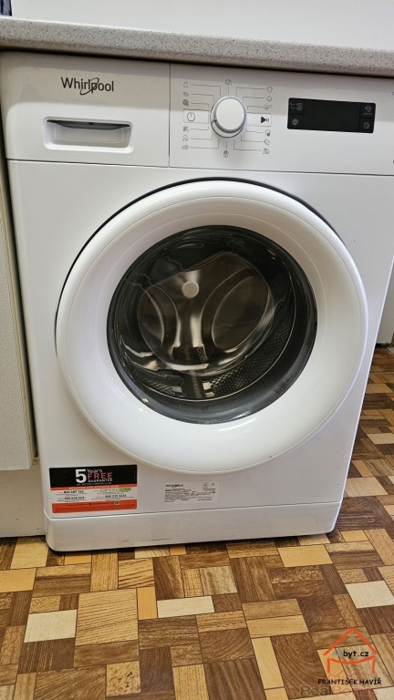 Kuchyňský kout se starší kuchyňskou linkou je vybaven elektrickým sporákem, menší volně stojící myčkou, lednicí s mrazákem, mikrovlnnou troubou a pračkou.