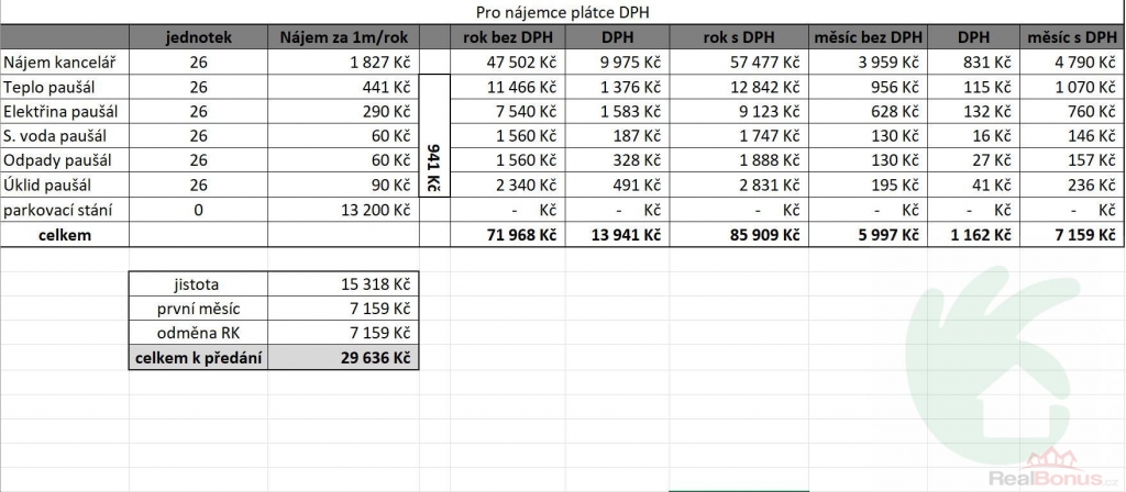 (cena bez služeb ve výši 941,- Kč/m2/rok)