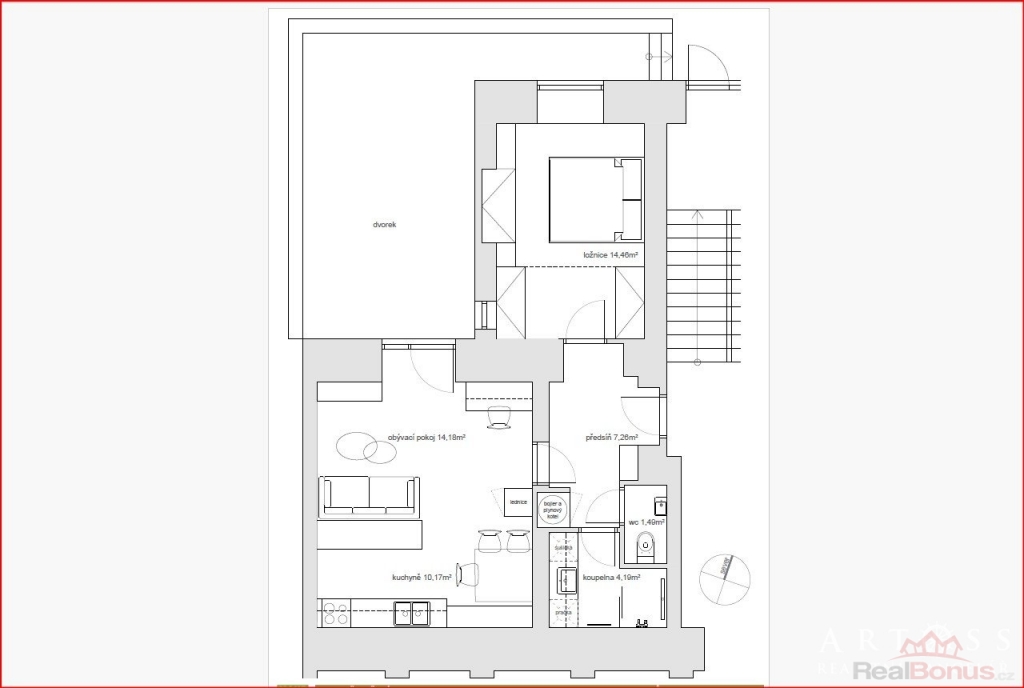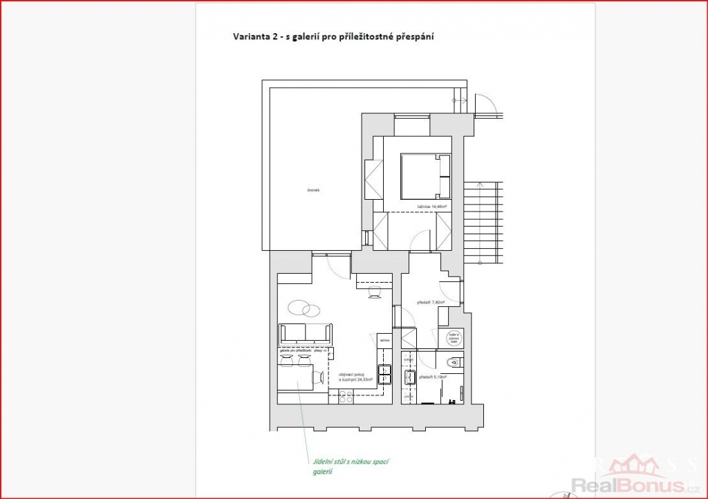 | Dispozice bytu | 2+kk |