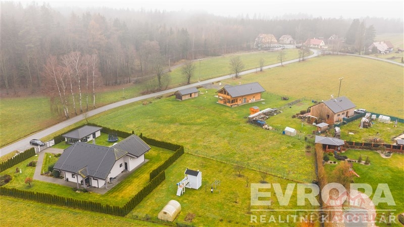Přípojky: vodovodní řád a elektrika vedou podél přední hranice pozemku. Od obce máme souhlasné stanovisko s připojením na vodovodní řád. Společnost ČEZ má na pozemku již i věcné břemeno k budoucímu napojení. Odpady musí být řešeny pomocí ČOV.