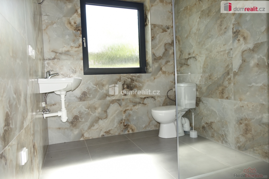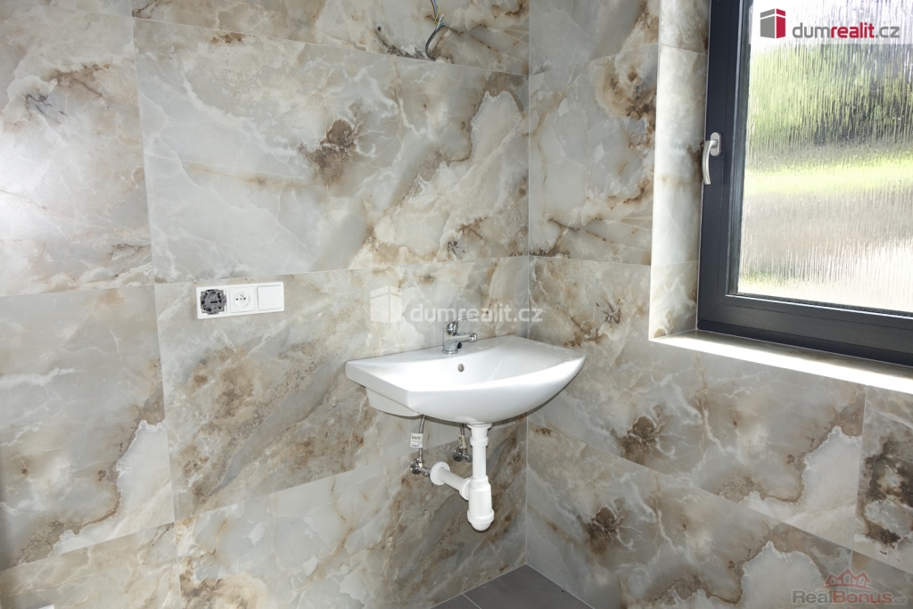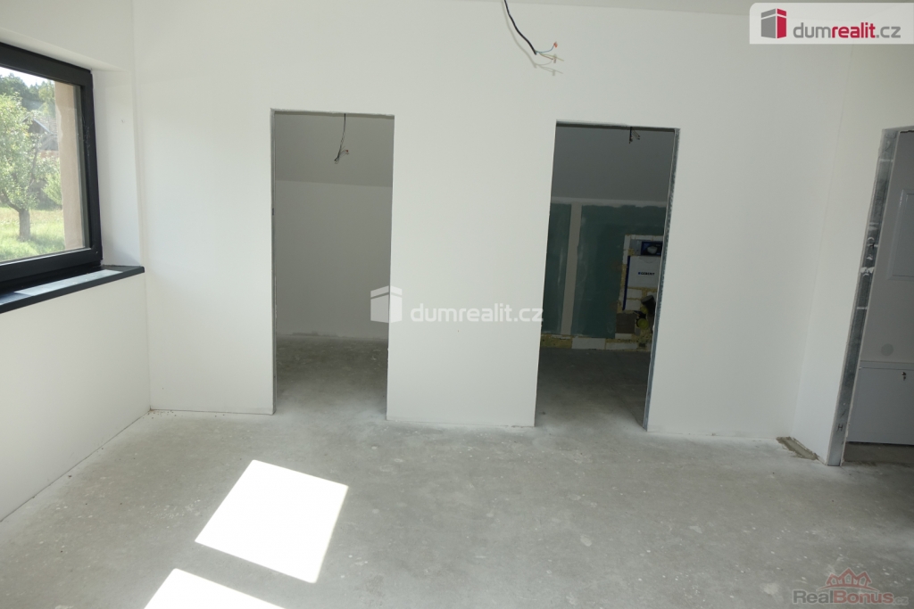 uvedená cena je včetně právního servisu a odměny RK, Dumrealit.cz Vám zprostředkuje ve výhradním zastoupení prodej novostavby rodinného domu o dispozici 5+kk s terasou, v klidné části obce Libež, stojí na rovinatém pozemku o celkové výměře 1.433 m. Patrový dům s 135 m užitné plochy je téměř před dokončením, zbývá dodělat interiérové dveře, částečně podlahové krytiny, obklady a sanitu v koupelnách v 1 NP. V případě zájmu je možná dohoda s majitelem o dokončení do finální podoby. Dispozice: za vstupními dveřmi do domu se nachází prostorné zádveří, po pravé straně je vstup do technické místnosti s prostorem pro pračku, sušičku, lednici, tepelné čerpadlo a další potřebné věci. Z chodby je dále vstup do koupelny osazené sprchovým koutem, umyvadlem a WC mísou. Pracovna s možností vstupu na terasu. Obývací prostor s kuchyňským koutem tvoří srdce domu, neboť disponuje přípravou na krb či krbová kamna a je zde vstup na terasu, která navazuje na zahradu. Z obývacího pokoje se dále dostanete po schodišti do patra, kde naleznete dva dětské pokoje, koupelnu a ložnici s vlastní koupelnou a šatnou. Dům je napojený na obecní vodovod a kanalizaci, elektřina 230 a 400 V. Vytápění bude zajištěno tepelným čerpadlem s podlahovým vytápěním a jako druhý zdroj vytápění je možné v obývacím pokoji využít přípravy pro krb či krbová kamna, které mimo výhřevnost v jarním a podzimním období umocní kouzlo domova. Střecha je sedlová s krytinou z pálených tašek. Jedná se o cihlovou stavbu, v patře se sádrokartonovými příčkami, doplněnou o zateplení, tudíž jsou počítané nízké náklady na bydlení energetická náročnost je ve skupině B. Zahrada je díky úpravě terénu rovinatá a její velkou předností je vstup přímo k řece Blanici, která protéká obcí. Nic méně není třeba se bát zatopení, neboť pozemek je dostatečně navýšený. Okolí domu tvoří další dvě novostavby a zahrady ostatních nemovitostí, což ocení především ti, co hledají soukromí. Blízká příroda poskytuje velké množství využití pro aktivní odpočinek. Obec Libež leží 6 km jižně do města Vlašim, kde najdete kompletní občanskou vybavenost včetně potřebných lékařů, úřadů a obchodních center. Libež je i dobré strategické místo pro spojení s Prahou, exit 41 km je vzdálený pouhých 10 minut. Doporučuji osobní prohlídku! V případě zájmu velice rádi pomůže se zprostředkováním financování. Pro více informací volejte na uvedené telefonní číslo. Ev. číslo: 652321. Energetický štítek: B (79 kWh/m2/rok).