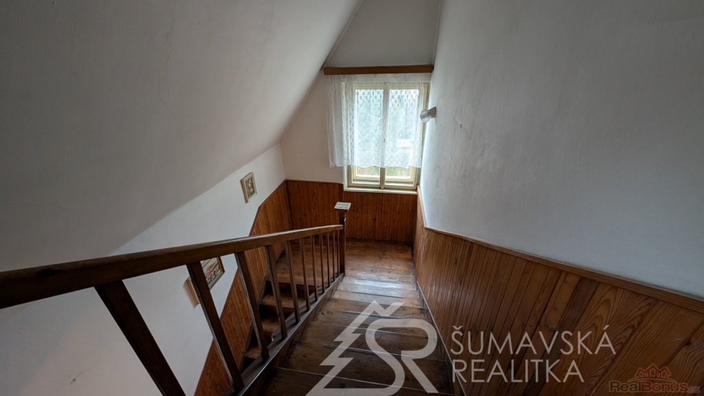 V 1. patře jsou osazena plastová okna (2015). Střecha je krytá eternitem.