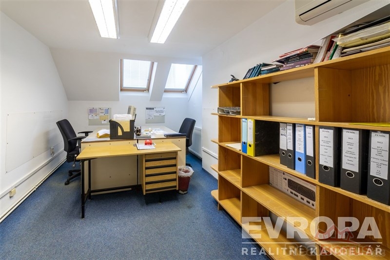 Kanceláře + recepce: 193,1 m (5 kanceláří v patře nad sklady, 2 z nich jsou klimatizované)