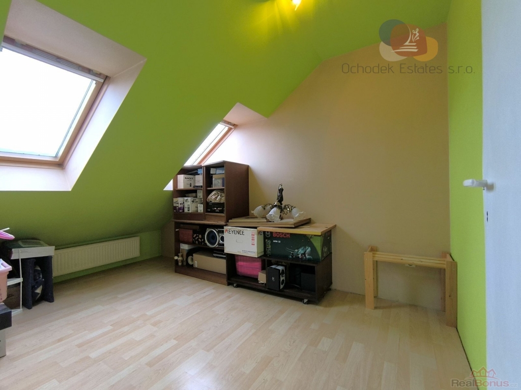 Jedná se o horní polovinu polořadového domu, přesněji podíl 1482/2666, kde je byt o dispozici 5+1 a výměře 113m2. V patře bytu jsou dva pokoje, kuchyň a koupelna s WC. Využitý je i půdní prostor, kde jsou 3 podkrovní ložnice a druhá koupelna. Dále je tu hned u vstupu technická místnost a nad ní další skladovací prostory pro všechny vaše (ne)zbytnosti. Ve fotogalerii jsou doplněné i vizualizace návrhového stavu.