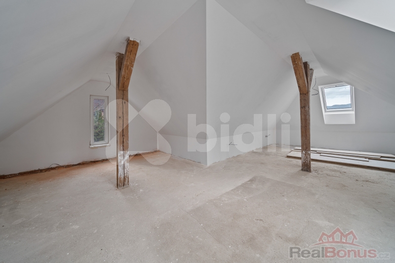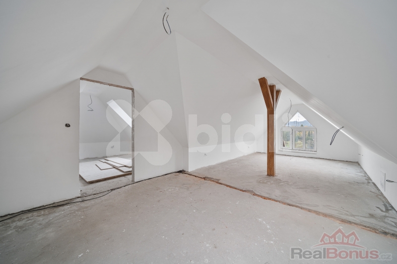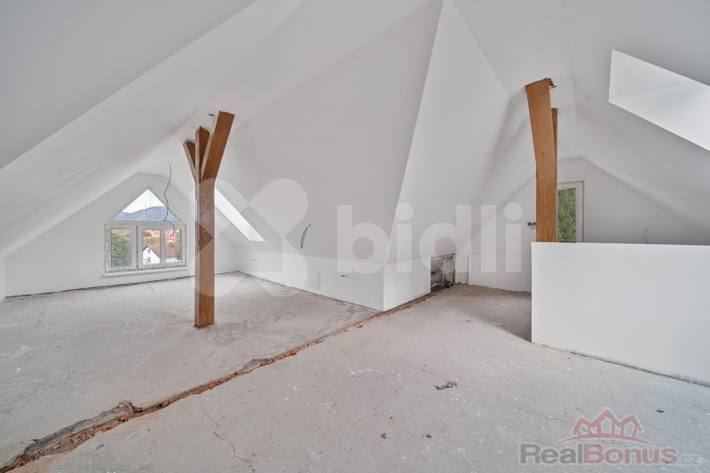 Podkroví: Ve fázi hrubé stavby, s hotovými rozvody elektřiny a topení. Je připraveno k dokončení dle vašich představ - vhodné pro vybudování dalších ložnic, pokoje pro hosty, pracovny nebo herny.