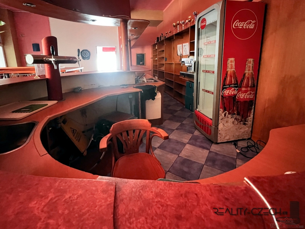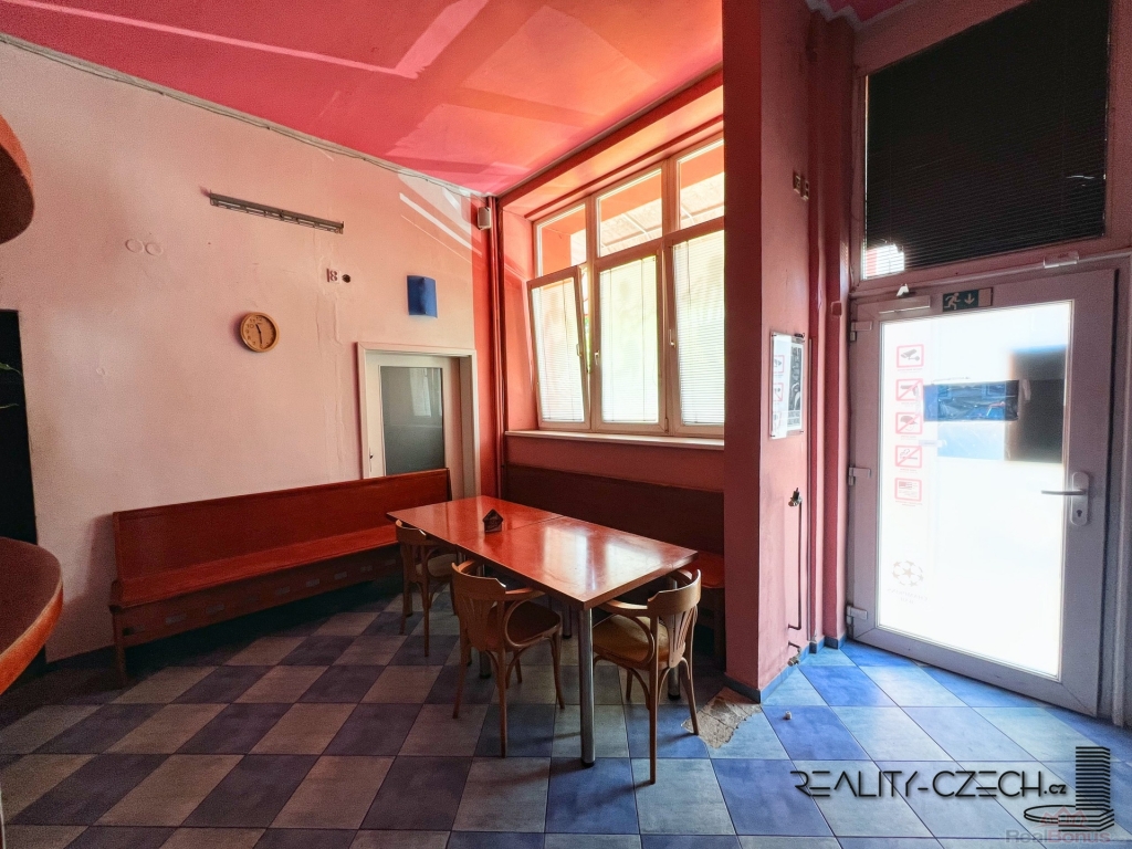 Nabízíme ke komerčnímu pronájmu rozlehlý dvoupodlažní nebytový prostor s možností využití jako restaurace, společenský klub s barem, herna, výrobní prostor, lahůdky, kanceláře, ordinace, prodejna atd. Prostory disponují rozsáhlými prosklenými výlohami. Je možné převzít včetně gastronomického pultu (vč. narážecího zařízení), stolů a židlí, billiardu a stolního fotbalu.