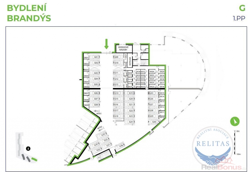 - kryté garážové stání v podzemní garáži, s výtahem přímo z garáže