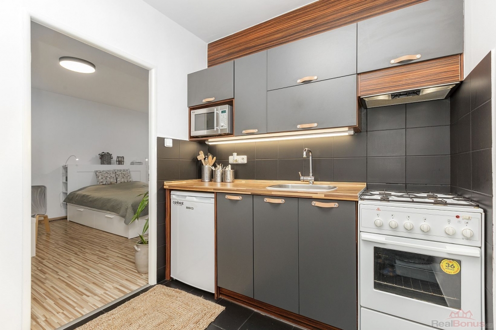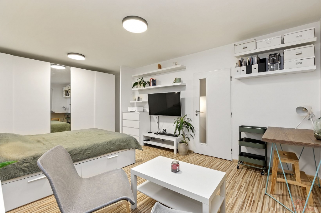 Byt v minulosti prošel téměř kompletní rekonstrukcí. Pronajímá se jako částečně zařízený (pračka se sušičkou, lednička, šatní skříně, postel s úložným prostorem, komoda, poličky, konferenční stolek, křesla).