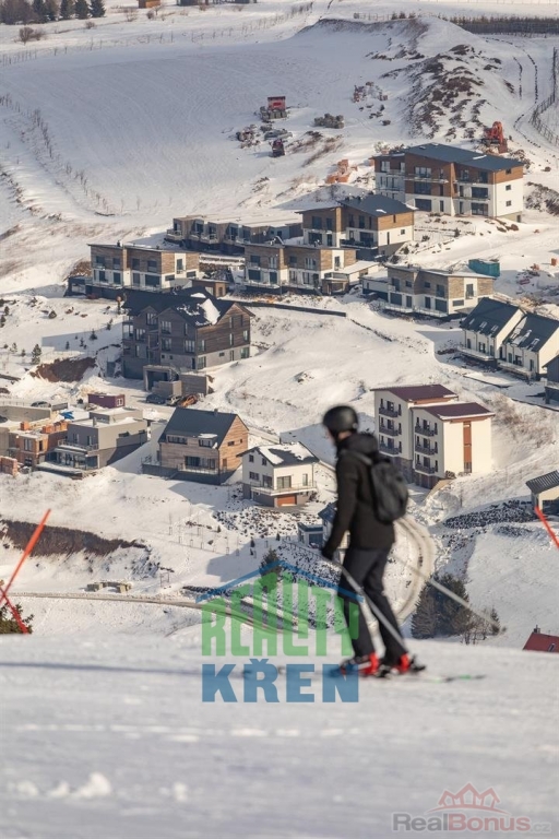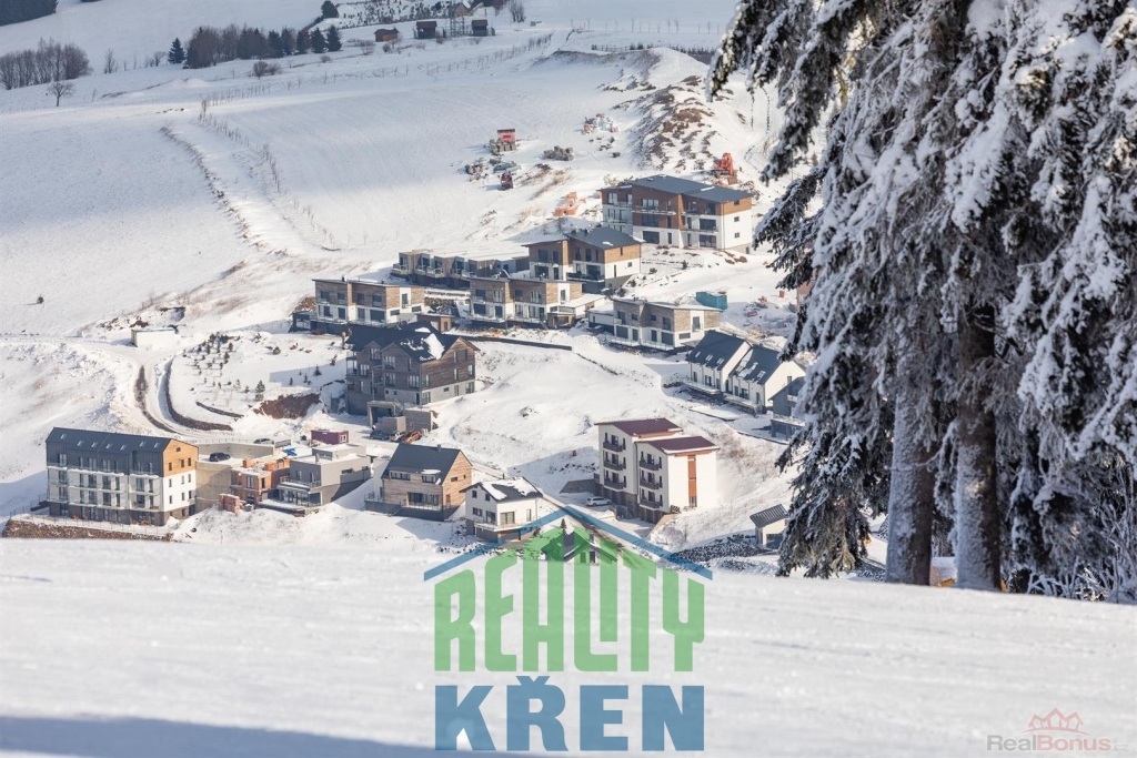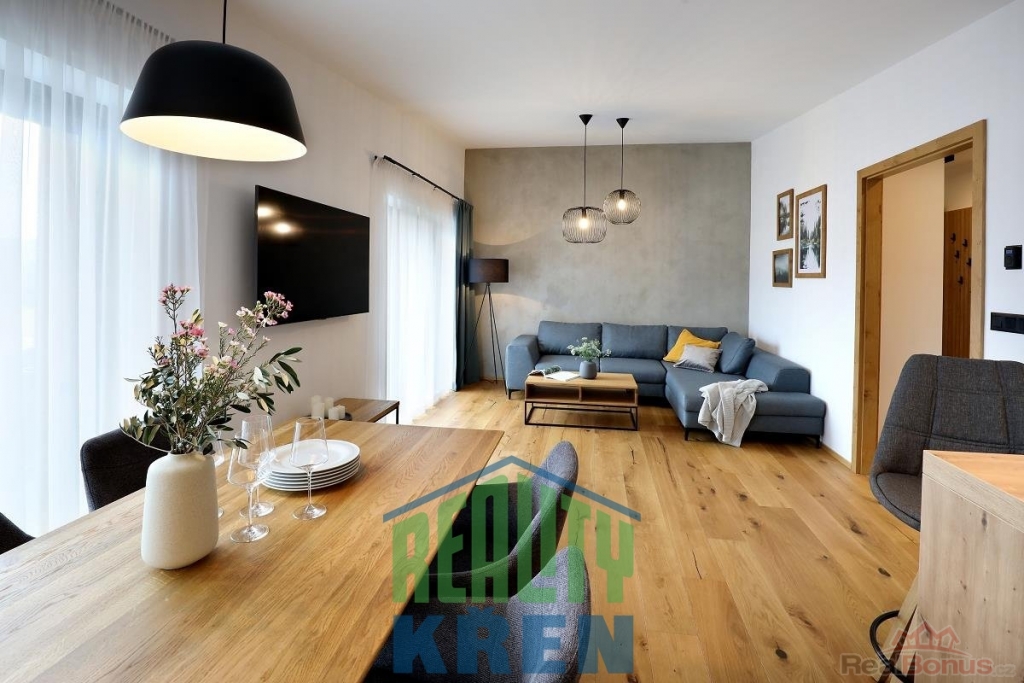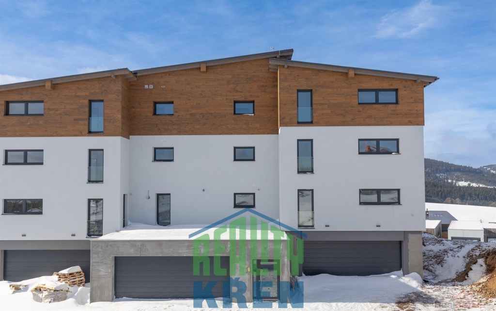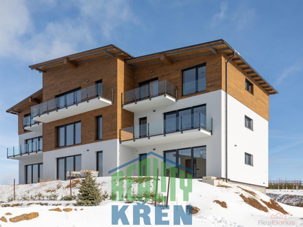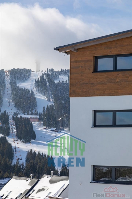 Moderní horský apartmán 3+kk s výměrou 66 m2 se nachází v 1. NP apartmánového domu, Loučná pod Klínovcem, Krušné hory.