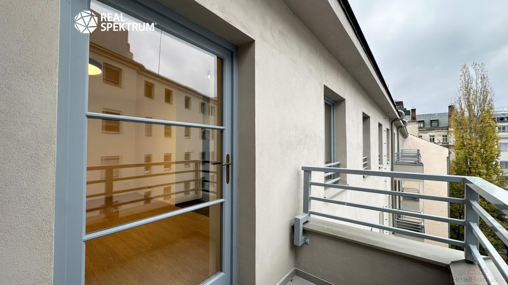 Apartmán se pronajímá částečně vybavený ? k dispozici je nová kuchyňská linka s elegantní kombinací černé a dřeva, včetně spotřebičů (myčka, lednice, varná deska, trouba, mikrovlnka). Obytný prostor působí vzdušně díky vysokým oknům a světlým podlahám. Koupelna je moderní a prostorná ? sprchový kout, umyvadlová skříňka, toaleta a pračka.