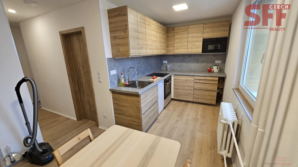 plně vybavená kuchyně s jídelním koutem (lednice s mrazákem, indukce, elektrická trouba, mikrovlnná trouba, myčka, nádobí)