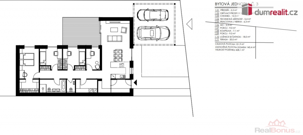 , exkluzivně prodej pasivního rodinného domu č. 4 o dispozici 5 +kk s užitnou plochou 130,6 m a pozemkem 463,8 m a domu č. 3. o dispozici 5 +kk s užitnou plochou 131,9 m a pozemkem 428,1 m v jedinečné lokalitě, která Vás doslova uchvátí. V případě zájmu jde koupit celý dvojdům. Jedná se o Rezidenční projekt v obci Červená Píska. Pokud se přijedete přesvědčit osobně na lokalitu, jistě pochopíte, proč tento projekt nese právě Jméno Oáza. Jde o velice atypický řešené nízkoenergetické dvojdomy, ve vysokých standardech, kde se klade důraz především na soukromí obou polovin domu. Dispozice domu: Přes zádveří je možné projít do menší otevřené šatny a odtud rovnou do obývacího pokoje s kuchyňským koutem. To může být velká výhoda pro ty z Vás, kteří pracujete z domu a nechcete si klienty, případně návštěvy vodit skrze celý dům. Z prostorného obýváku vede chodba, ze které jsou přístupné všechny ostatní místnosti v domě. Tedy pracovna, technická místnost , dva dětské pokoje, ložnice s vlastní šatnou a v neposlední řadě koupelna s vanou i sprchovým koutem a WC. Navíc je zde i samostatné WC s umyvadlem. U obývacího pokoje a ložnice je přímý vstup na terasu. Výhodou tohoto domu je, že má absolutní soukromí s výhledem do zeleně a v podstatě bez sousedů. Kolaudace již v srpnu 2023. Pokud si přejete bydlet v rezidenčním komplexu s přístupem k jezeru a dobrou dostupností nedaleko Prahy, pak je tento projekt třeba právě pro Vás. Z vedlejší obce Tišice jezdí vlak na Hlavní nádraží, po modernizaci tratě bude dojezd do 30 minut. Okresní město Mělník se nachází 7 kilometrů na severozápad, ráno je dosažitelné školním autobusem do 15 minut. Moderní mateřská škola je v obci Tuhaň, ZŠ je 2 km směrem k Mělníku ve vedlejší obci v Záboří. Populární jezero Konětopy a Lhota jsou vzdáleny 10 minut autem. Lokalita na západní straně přiléhá k obci, byť vzdálenost k nejbližšímu domu je více jak 200 metrů, na severní a východní straně se rozkládá volná krajina, na jižní straně přes silnici se nachází rozsáhlý lužní les. Volná krajina vybízí k dlouhým vycházkám, k projížďkám na horském kole či vyjížďkám na koni. V tomto speciálním místě, který je součástí budoucí rezidence na Červených Pískách, bych chtěl vyzdvihnout perfektní fungování a správu Obce Tuhaň, která po celý rok pořádá spoustu akcí pro všechny věkové kategorie. Obec Červená Píska spadá právě pod obec Tuhaň, odkud je možné se dostat do Letňan je 20-25 minut, na Černý most se dostanete přes Starou Boleslav a dálnici D10 za 30 minut. Domy jsou již napojeny na všechny inženýrské sítě - vodovod, jímka( připojení na tlakovou kanalizaci bude možné po navýšení kapacity čističky), elektřina a plyn. V současné době se již dokončuje zámková příjezdová komunikace a pracuje se terénních úpravách na pozemcích. Pro více informací kontaktujte makléře. Ev. číslo: 645598. Energetický štítek: A (78 kWh/m2/rok).