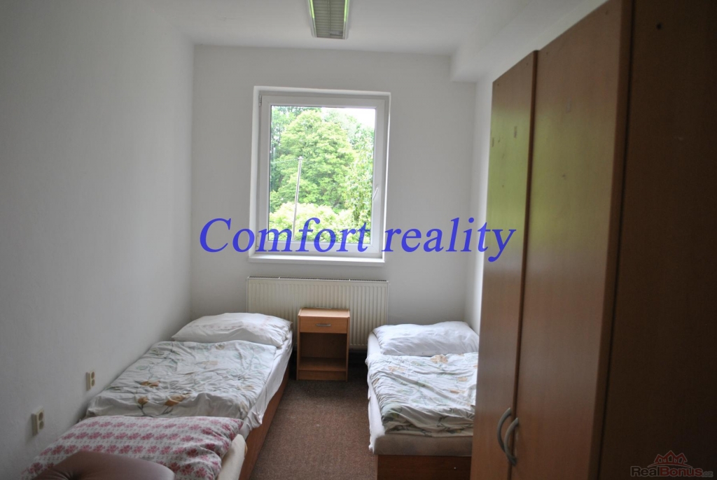 Nabízíme prodej ubytovacího zařízení v areálu bývalého statku. Objekt je vhodný jako sídlo firmy se skladem nebo výrobou anebo jako ubytovna. V 1. NP se nachází prádelna, sklad, šatna, jídelna, kuchyně a skladové prostory nebo výrobní. K přízemním prostorům je již vypracován projekt na vybudování dvou bytů 2+kk o výměře 41 m2 a 39 m2. Ve 2. NP se nachází centrální koupelna s WC (další WC je samostatné), kuchyně s jídelnou a 7 pokoji. Objekt je vytápěn plynovým kotlem s ústředním vytápěním. Odpadní vody svedeny do jímky. Jelikož od majitele domu nemáme k dispozici energetický štítek náročnosti budovy, zákonná povinnosti nám nařizuje uvádět v inzerci energetickou náročnost budovy třídy G - mimořádně nehospodárná. Více info u makléře.