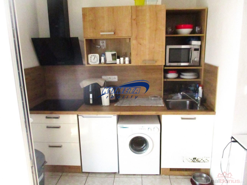 Je vybavený včetně KL se sklokeramickou varnou deskou, pračkou a ledničkou.