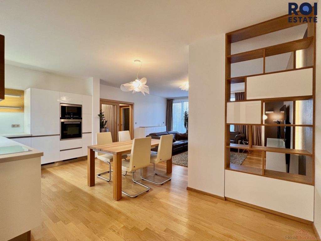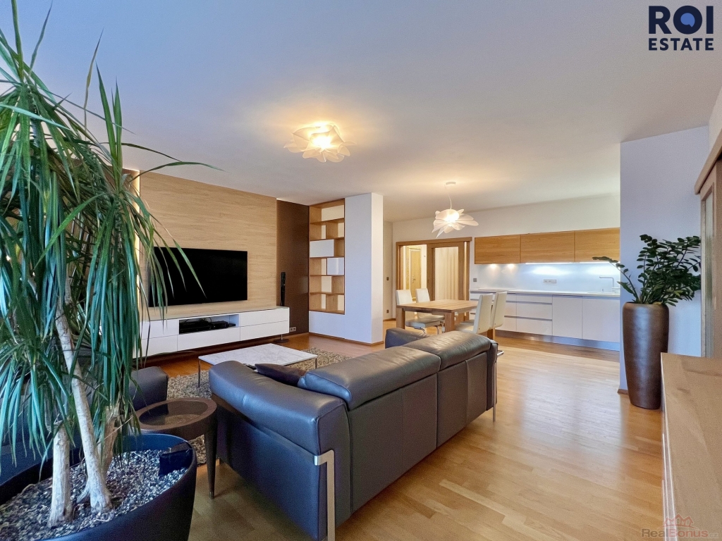 Vybavenost: Byt je kompletně zařízen nábytkem, který je vyroben z luxusních a kvalitních materiálů od značek Natuzzi, Rolf Benz, Tempur aj.. Všechny detaily jsou promyšleny tak, aby splňovaly vysoké nároky na komfort a estetiku.