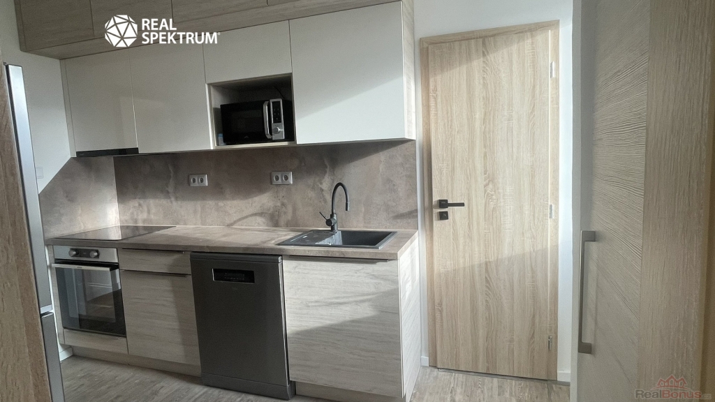 -samostatná kuchyně s novou moderní kuchyňskou linkou a vestavnými spotřebiči (trouba, varná deska, myčka) + lednice