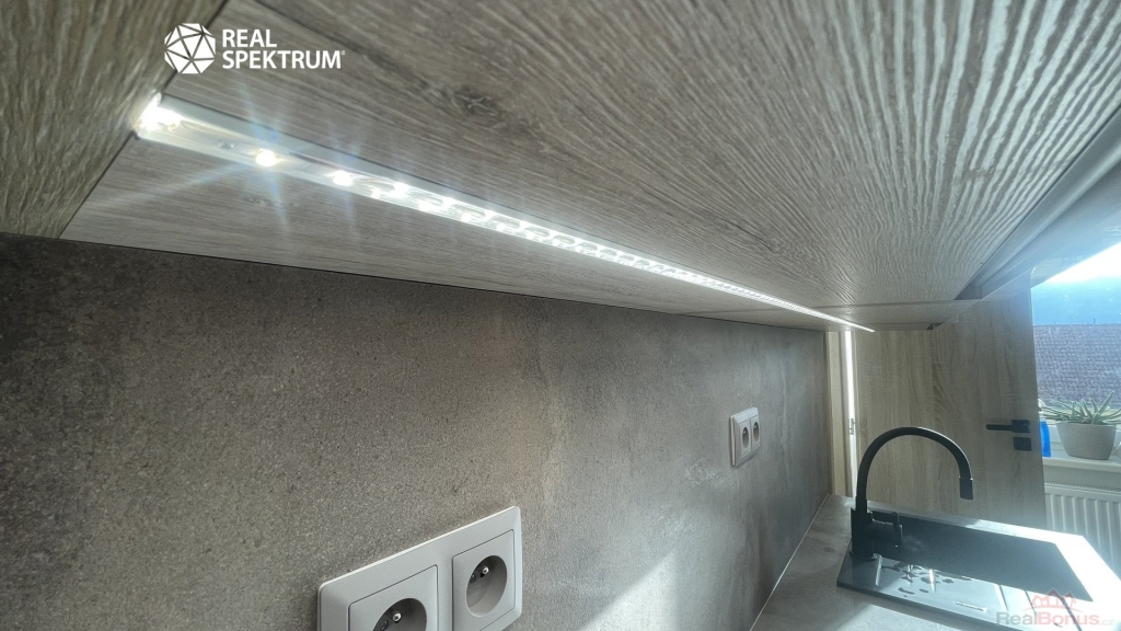 Nové podlahy v dekoru dřeva, moderní povrchy, dostatek zásuvek, nadčasové provedení.