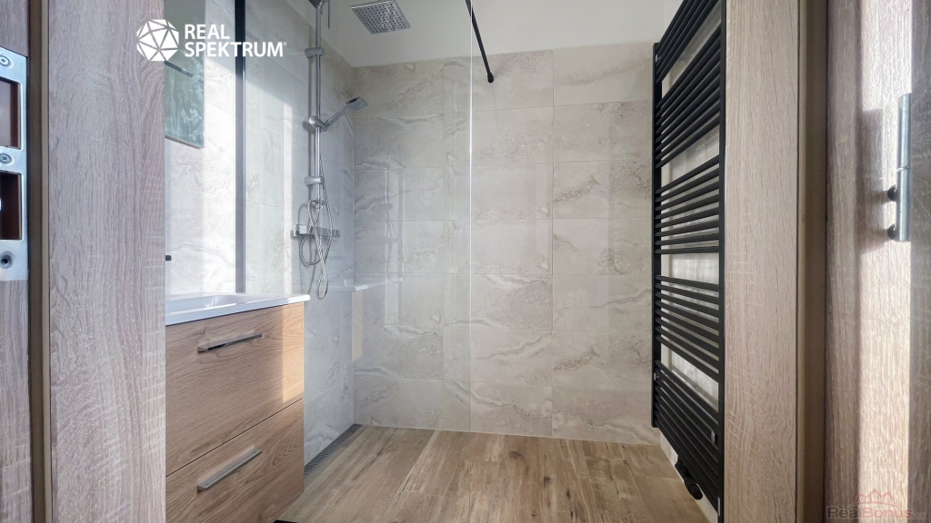 -nová koupelna se sprchovým koutem a koupelnovým nábytkem