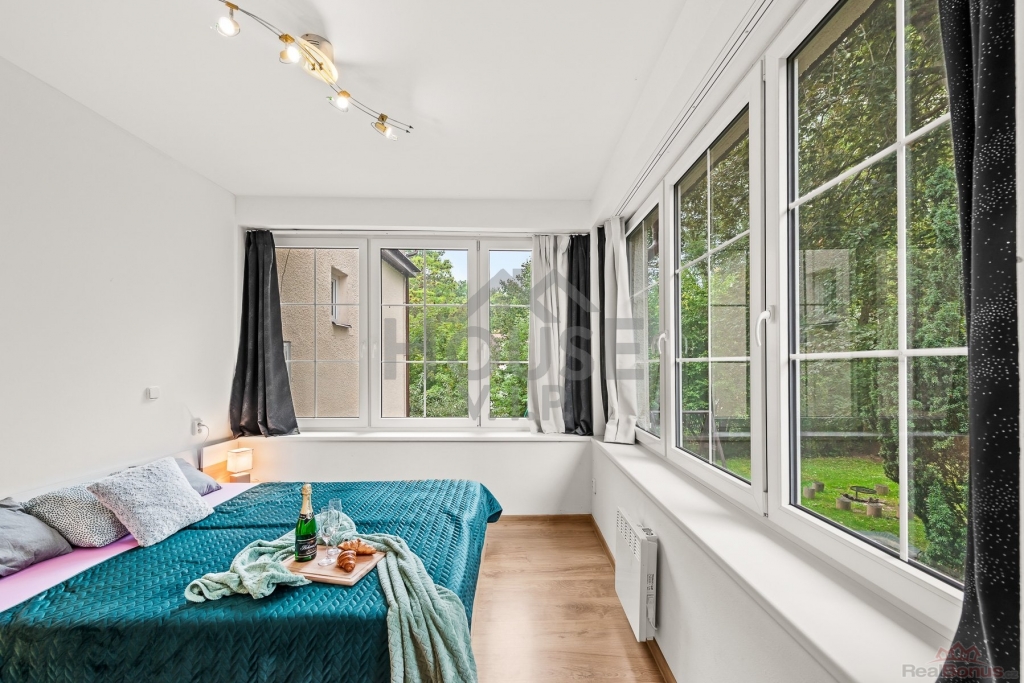 Vchod do apartmánu je koncipován ze zadní části objektu, což zaručuje klid a soukromí. Jehož dispozice zahrnuje předsíň, koupelnu se sociálním zařízením a vanou, prostornou obývací místnost s kuchyně a prostorná ložnice.