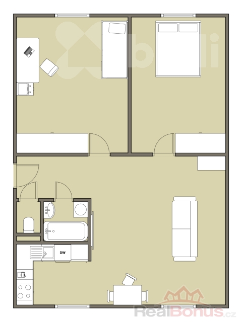 Použité vizualizace v inzerci jsou případným návrhem vybavení bytu.