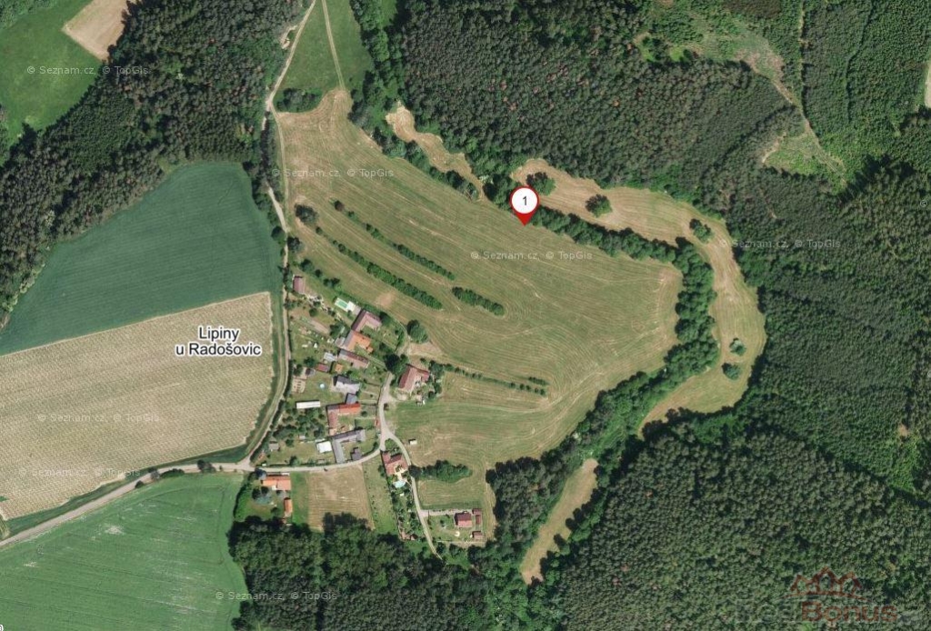 Nabízíme k prodeji pozemek v katastru vedený jako zahrada o výměře 2230 m2 v katastrálním území Radošovice u Vlašimi (část Lipiny u Radošovic, okres Benešov, Středočeský kraj). Pozemek se nachází v blízkosti Lipinského potoka a je aktuálně obhospodařován na základě pachtovní smlouvy s roční výpovědní lhůtou. Přístup je zajištěn obecní cestou. Podle platného územního plánu je zařazen jako plocha zemědělská - trvalý travní porost.