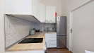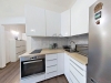Menší průchozí kuchyň umístěná v předsíni působí jako samostatně řešený prostor, který bytu dodává příjemnou atmosféru při každodenním fungování.