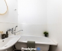 Dispozice bytu je velmi praktická. Dva světlé pokoje doplňuje samostatná kuchyně s prostorem pro jídelní kout, koupelna s vanou, samostatná toaleta a chodba. Koupelna i toaleta jsou v původním umakartovém jádru. Balkon nabízí příjemný výhled do vnitrobloku směrem k centru Znojma. Úložné prostory zajišťuje sklepní kóje a k dispozici je také společná kolárna, kočárkárna a dvě sušárny.
