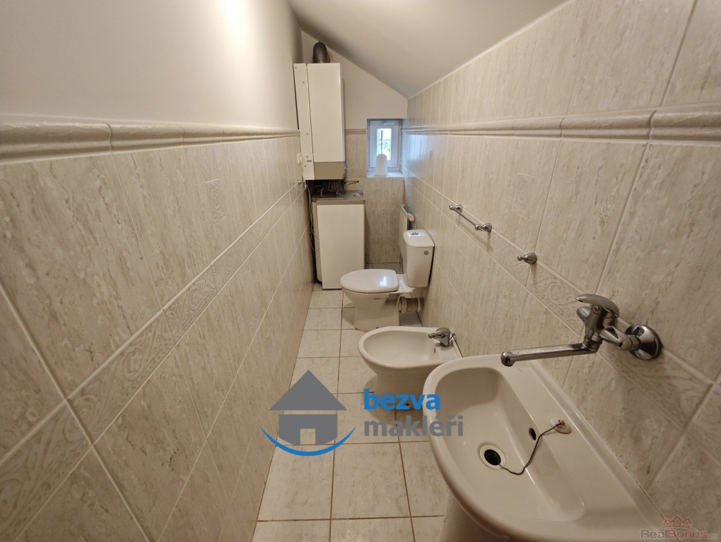 V celém bytě je položena dlažba. Vytápění zajišťuje plynový kotel.