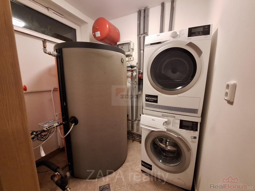 Vybavení: kuch. linka s velkou spíží, vestavěnné spotřebiče (lednice, myčka, el. varná deska, digestoř, el. trouba a mikrovlnná trouba), centrální vysavač, optický kabel ve všech místnostech, zaabezpečovací systém, domácí telefon, biokrb, ve všech oknech bezpečnostní skla a stínící žaluzie, dálkové ovládání garážových a vjezdových vrat, zásuvka 400V v garáži