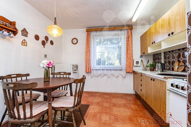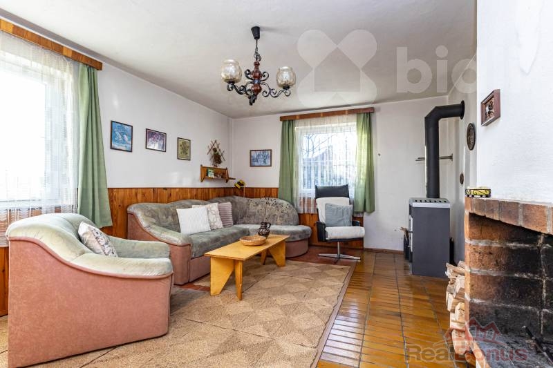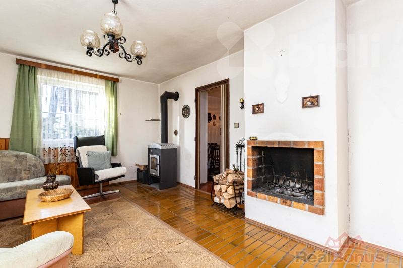Srdcem domu je světlý obytný prostor a kuchyně, kde v zimě zahřejí krbová kamna a vytvoří neopakovatelnou atmosféru.