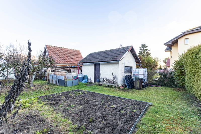 Na konci zahrady se nachází zděná kůlna, ve které můžete skladovat sezonní nábytek a nářadí.